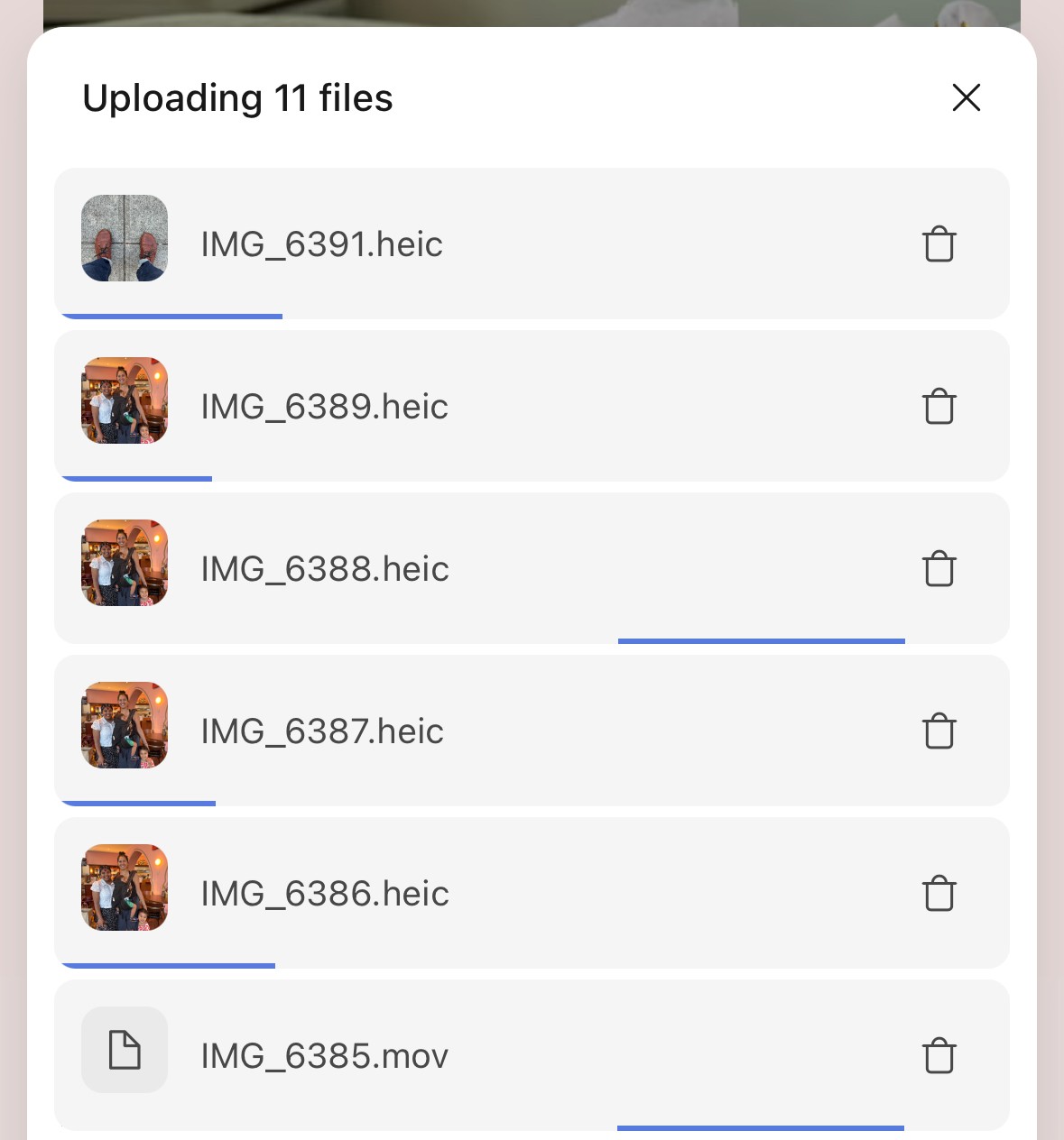 Upload photos, videos and images from any device. No Sign In. No Apps. Just Vibes.