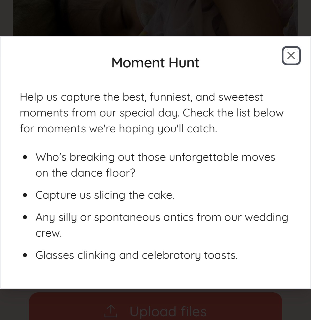 GIve a list of visuals cues for your guests to capture. Yay or nay…Toggle it off or on.
